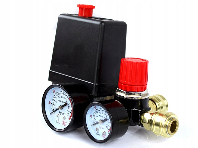 Якісний реле тиску (реле тиску) з колектором, двома швидкими з'єднувачами та манометрами, призначене для компресорів тиску 230В.