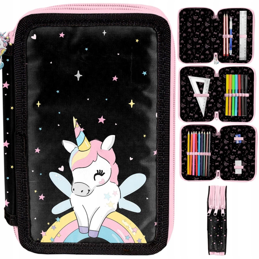 Шкільний пенал на 3 відділення з обладнанням від останнього Paso Колекція Unicorn. Оригінальний чорний і рожевий кольори створюють гармонійне ціле і радують маленьких клієнтів. На лицьовій стороні є малюнок із зображенням Єдинорога". Він присвячений маленькому шанувальнику цих міфічних істот. Пенал ідеально поєднується з іншими виробами цієї серії.