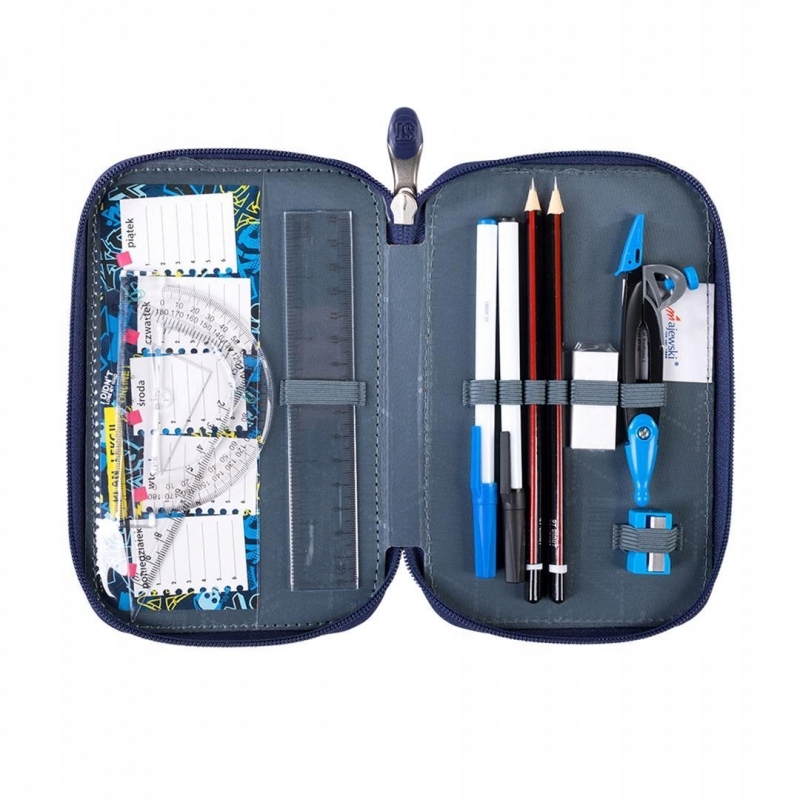 3 відділення, кожне закривається на блискавку, закривається на блискавку, ергономічна профільована міцна ручка на блискавці має відділення та численні застібки для полегшення організації шкільного приладдя.