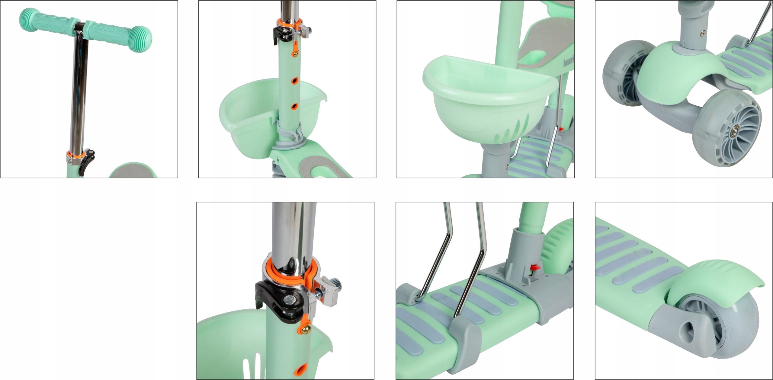 Самокат має переваги велосипеда-балансира, але після зняття сидіння ми можемо перетворити його на триколісний самокат, який росте разом із вашою дитиною завдяки регулюванню керма та сидіння. Це чудовий спосіб для вашої дитини потренуватися в утриманні рівноваги та координації рухів.