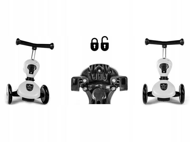 Завдяки інноваційному дизайну ви можете легко та швидко переробити райдер у скутер без використання інструментів.