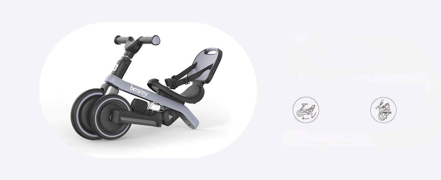 Триколісний велосипед Besrey 5 в 1 для дітей 1–3 років, балансир, дитячий триколісний велосипед із ручкою для штовхання для батьків, легкий у транспортуванні складаний триколісний велосипед, сірий