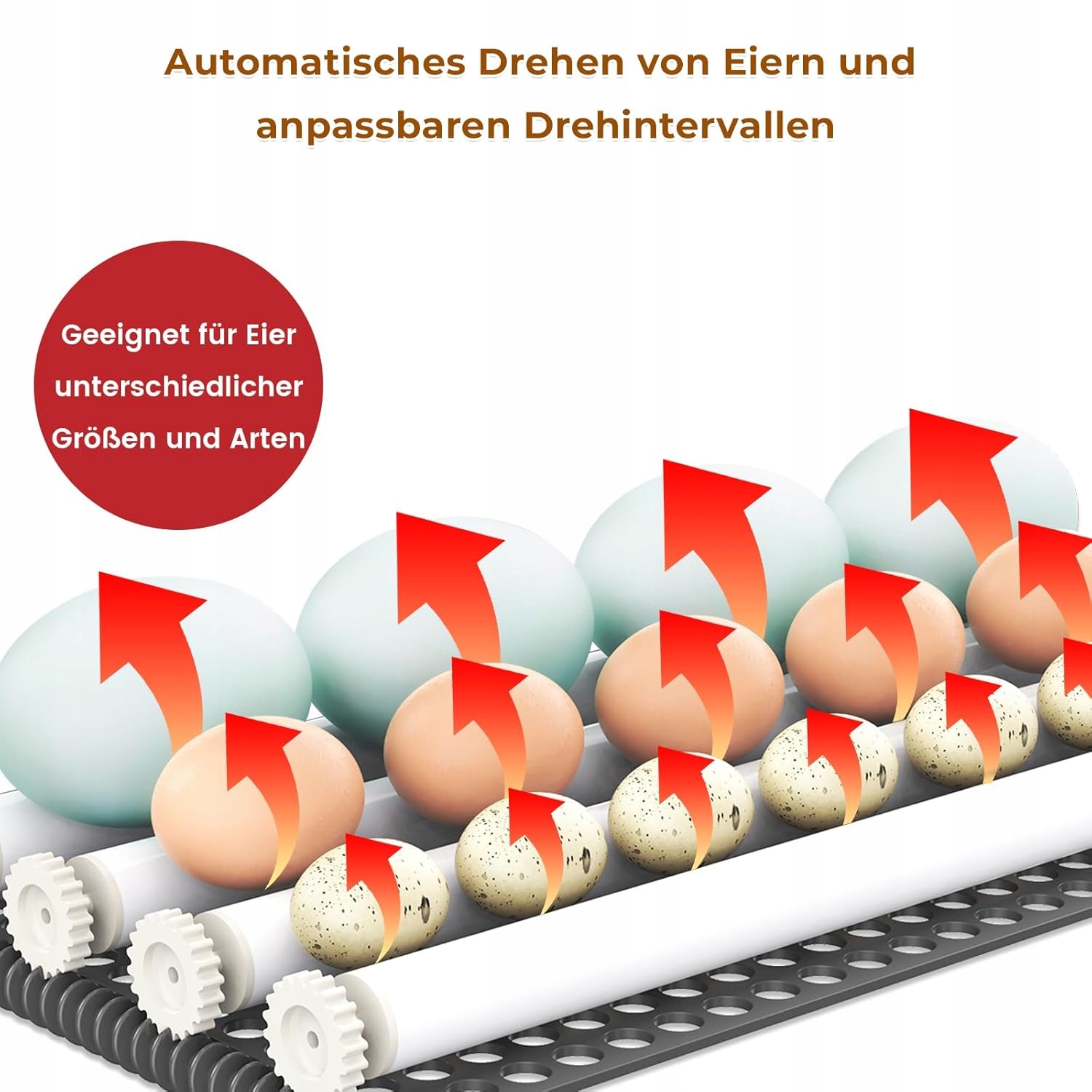 - 【Автоматичне прокатка яєць + регульований механізм ролика】 Стандартний час обертання яєць становить 90 хвилин, але його можна регулювати індивідуально. Відстань між роликами також може бути відрегульована індивідуально для адаптації до різних типів. Підходить для курки, качки, перепелів, гусей та інших птахів.