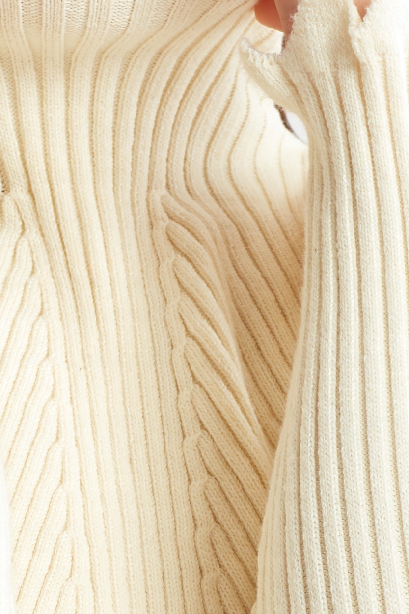 Сукня Salma має елегантну напівводолазку та вишукану рубчик на шиї, що додасть їй неповторного шарму. Довгі рукави з ледь помітною гофрованою текстурою надають йому унікального характеру.