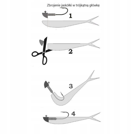 барвиста голова фенікс -плавника у формі трикутника до приманок плаву - риба 6 см, і всі ластівки 5,5 - 7 см, сучасна форма голови була розроблена спеціально для цієї приманки, унікальної роботи приманки, приманка не падає, як на стандартній голові, але напружена риба вбік і падає напівгорію.