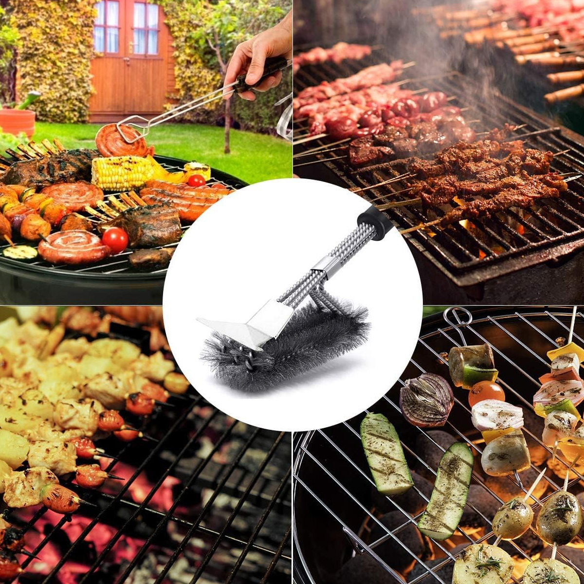 Трирядна щільна дротяна щітка охоплює більшу площу, ніж традиційна щітка для чищення, досить гострі та міцні сталеві щетинки дозволяють ефективно та швидко очистити решітку за кілька секунд. Щетина з нержавіючої сталі довжиною 1 см забезпечує ідеальний поворот решітки на 360°, щоб досягти всіх країв і кутів