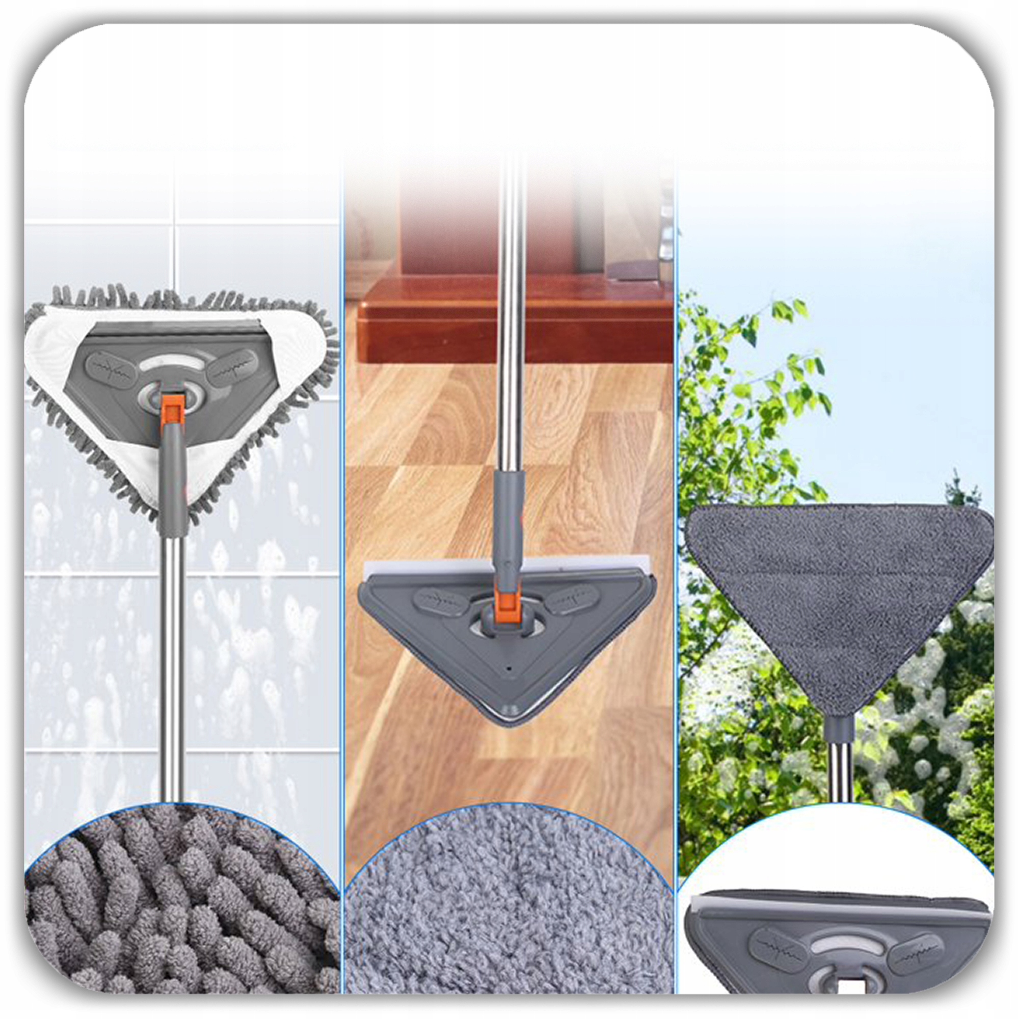 🔄 Трикутна головка на 360° - досягає місця, куди не можуть дістатися інші швабри