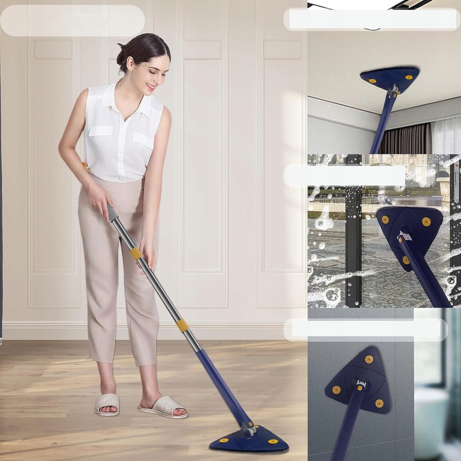❤️【Швабра, що обертається на 360°】Лоток для чищення має найновіший тип трикутної конструкції, головка швабри, що обертається на 360°, дозволяє не залишає пилу в мертвому кутку, легко розчиняє стійкий пил у кутках стіни, стелі та вікна.