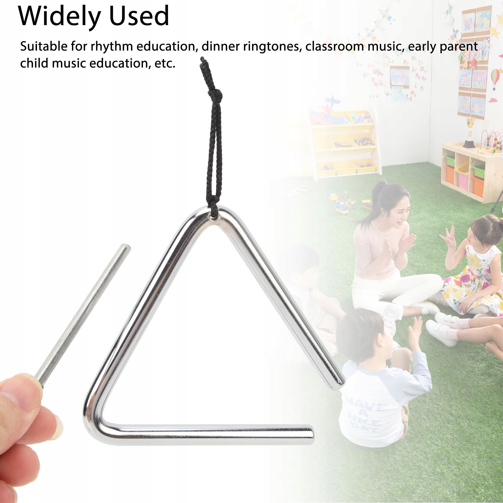 Функція:1. [Ритмічний навчальний інструмент] Цей трикутний перкусійний інструмент видає чисті резонансні звуки, що робить його винятковим інструментом ритмічного навчання.