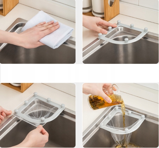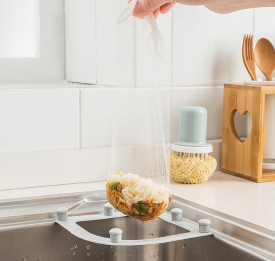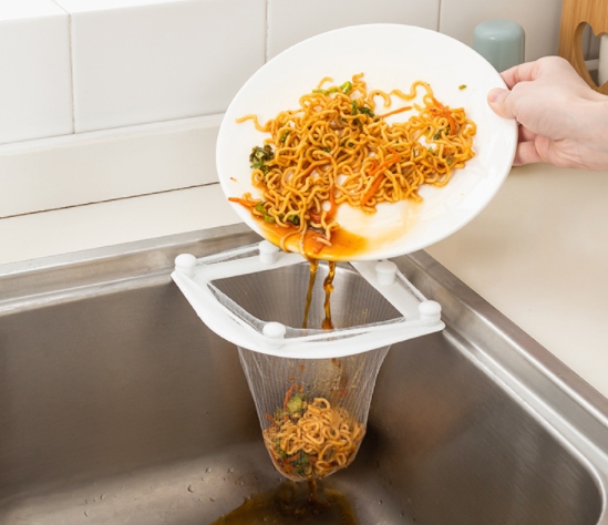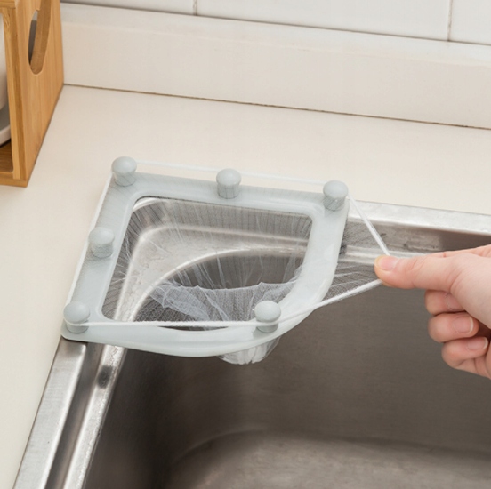 Фільтр для раковини кріпиться до раковини за допомогою присосок, з пінопластовими сітками, які замінюють роль органайзера для губок або дроту, а також для проціджування їжі залишається. Завдяки сітці ми забудемо про видалення залишків їжі з раковини та про забиту раковину.