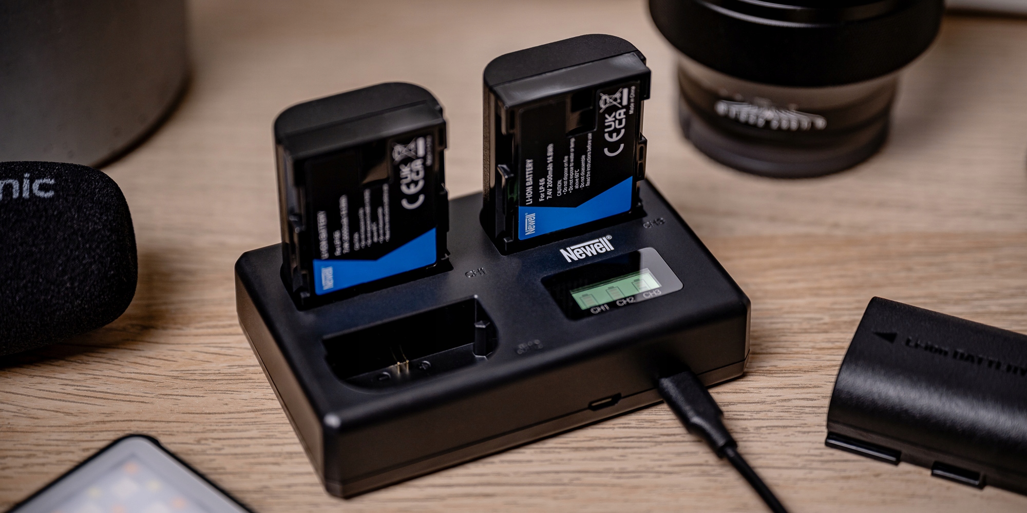 Newell TT-USB-C для батарейних батарей LP-E6-це зарядний пристрій три зарядки, створений для фотографів та творців відео, які часто працюють у цій галузі. Його компактні розміри (10,6 х 6,7 х 2,9 см) і невелика вага (71 г) змушують його легко вмістити в кожен мішок рюкзака або навіть кишені. Можливість одночасно завантажувати до трьох акумуляторів означає менший час простою та більше часу для впровадження творчих ідей. Знімний кабель USB-C, що входить до набору, полегшить упаковку-якщо потрібно, ви можете кинути його в іншу кишеню, якщо місце для самого зарядного пристрою обмежене.