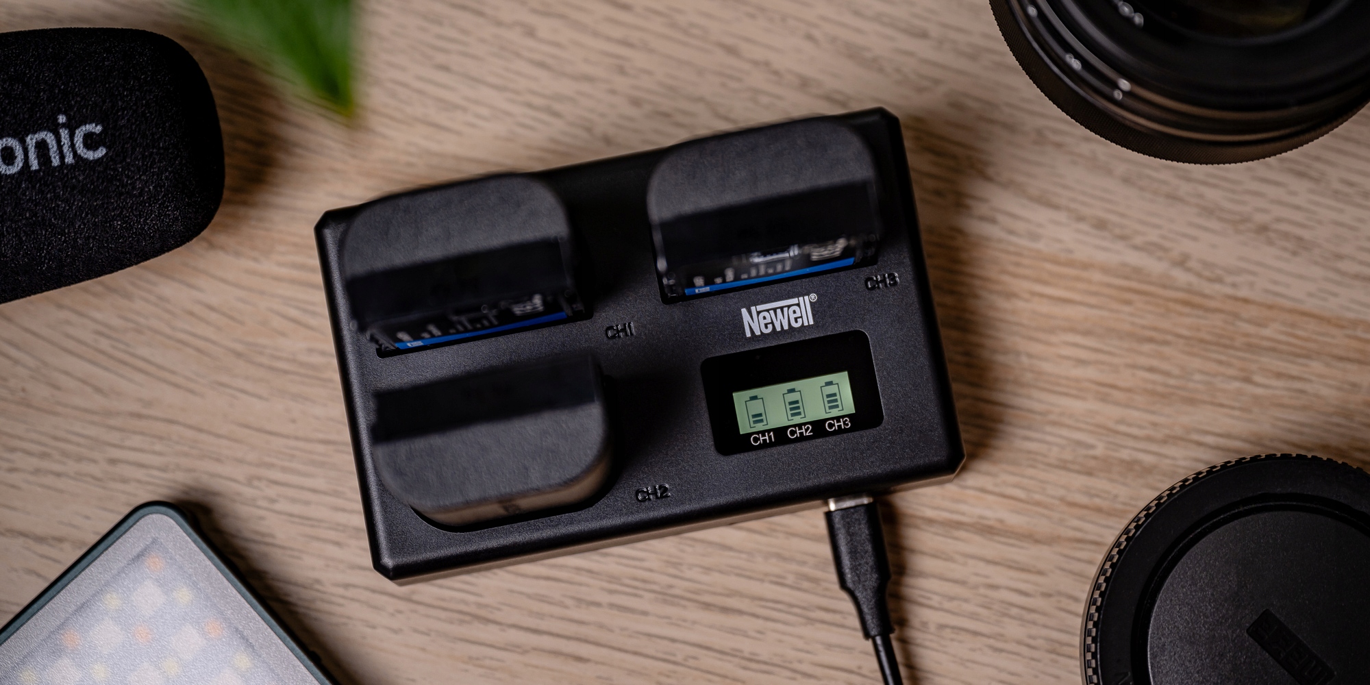 Newell TT-USB-C-це компактний триканальний зарядний пристрій для акумулятора LP-E6, створений для користувачів Canon Camera. Це дозволяє одночасно заряджати три клітини. Завдяки розширеним контролерам, весь процес працює швидко та безпечно. Два порти (USB-C та Micro USB) дозволяють підключити пристрій не лише до зарядного пристрою, прикріпленого до електричної розетки. Ви також можете успішно підключити його з Powerbank, ноутбуком або USB -розеткою в машині. Лише один погляд на екран з підсвічуванням, щоб перевірити енергетичний стан кожного акумулятора. Набір включав знімний кабель USB-A / USB-C. Продукт, охоплений 40-місячною програмою підтримки.