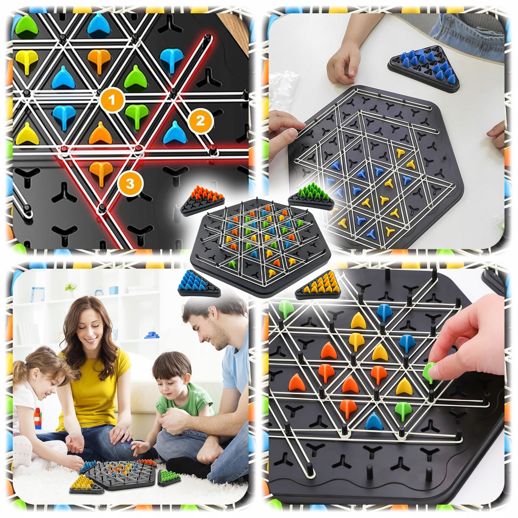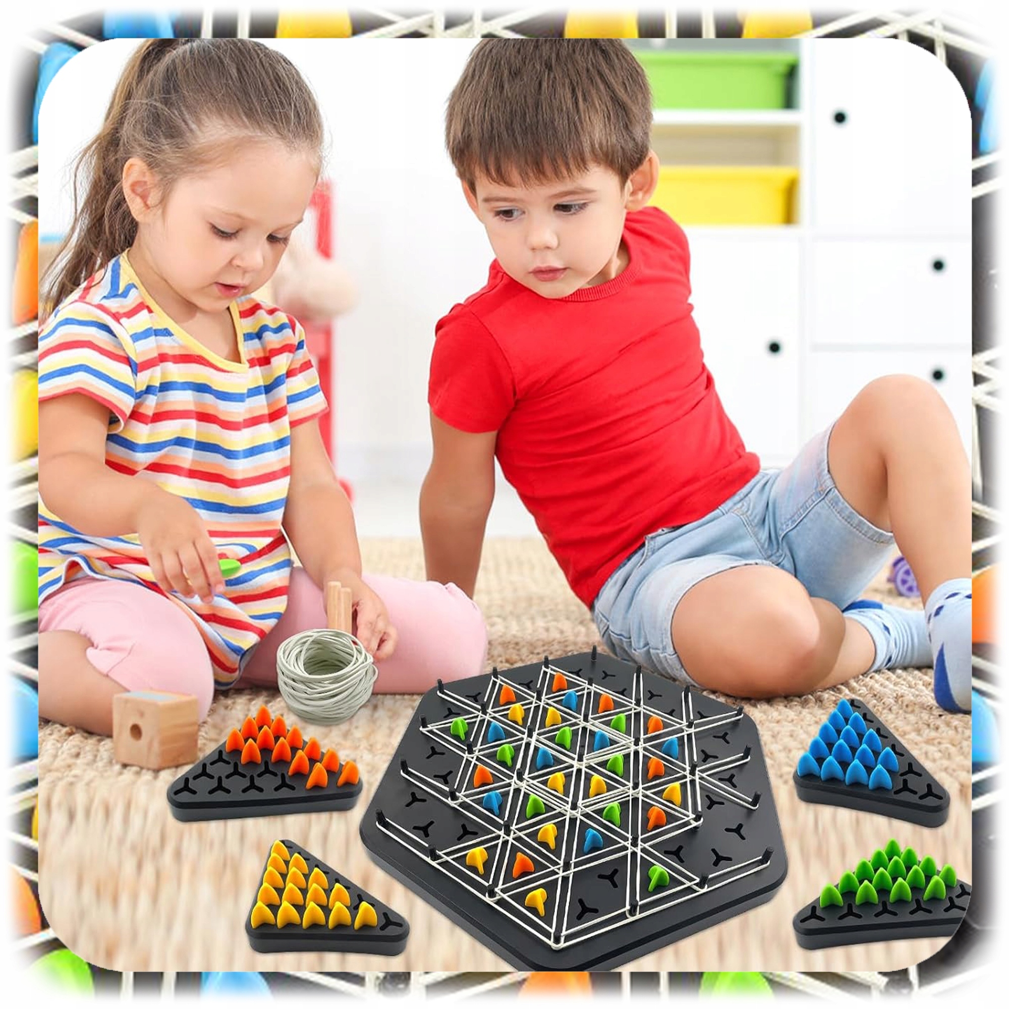 Гра передбачає створення трикутників за допомогою гумок, натягнутих на спеціальні шпильки на дошці.