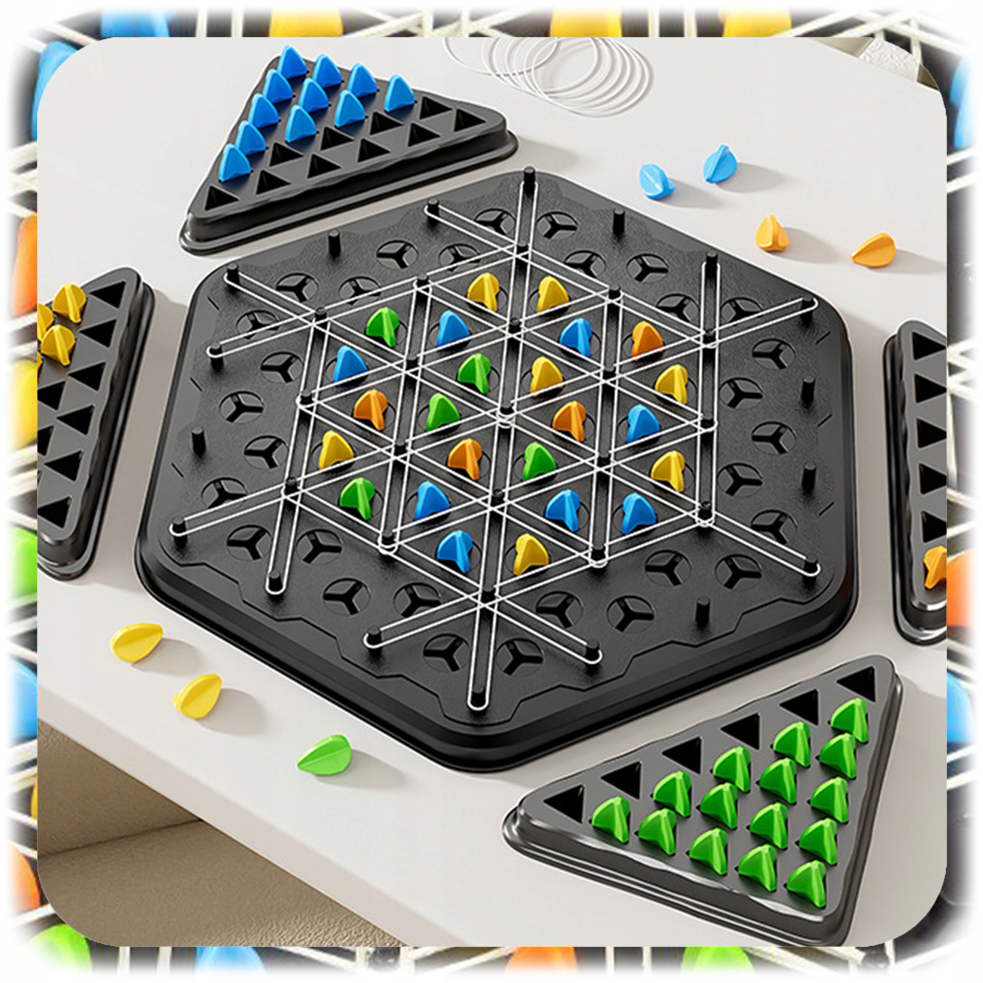 Гра-головоломка Triggle – стратегічна гра-трикутник із гумками та пішаками