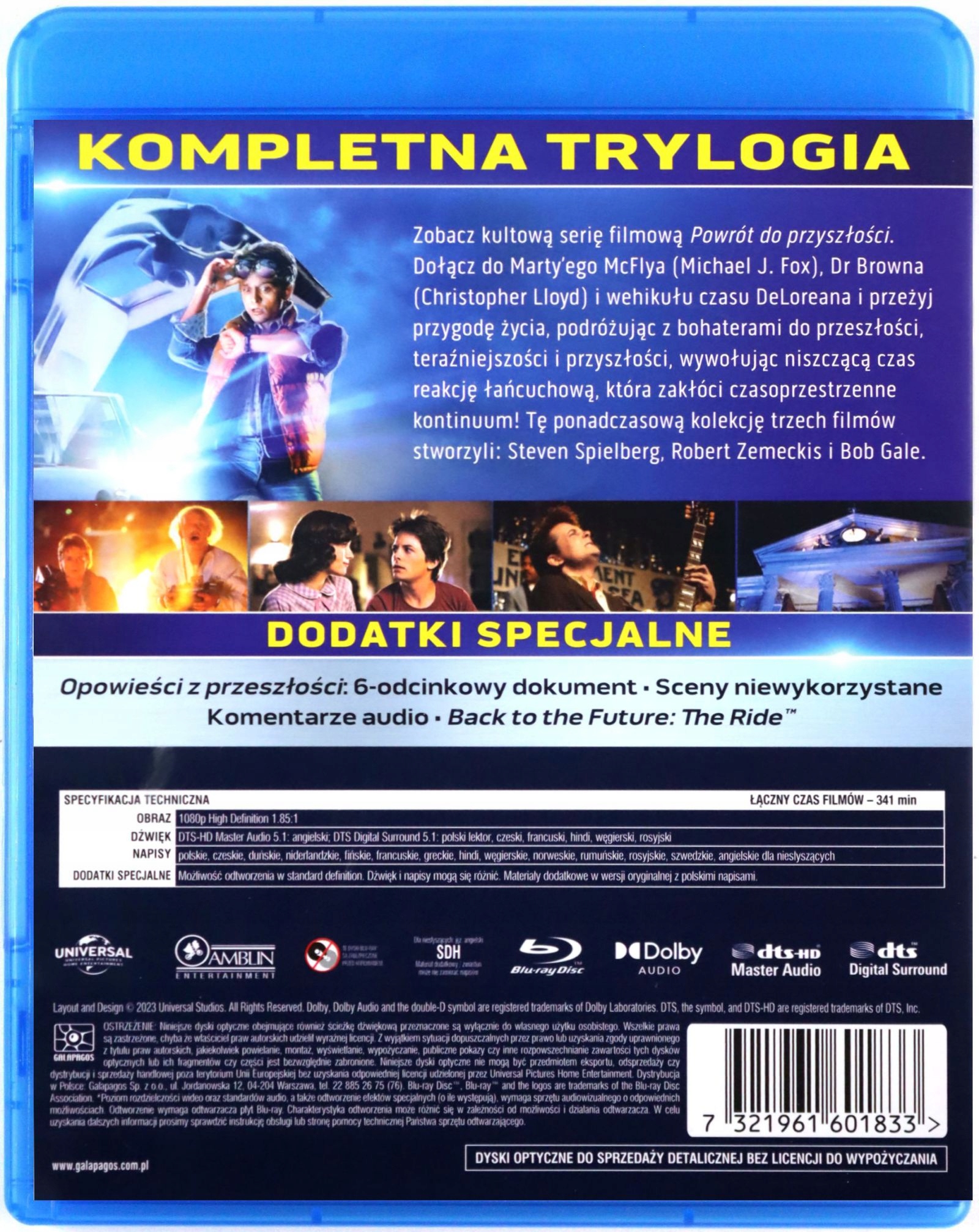 Трилогія «Назад у майбутнє» — це оновлена версія серії класичних фільмів Стівена Спілберга, Роберта Земекіса та Боба Гейла, перероблена на Blu-ray найвищої якості та наповнена годинами нового, ніколи раніше не бачені екстри. Настав час справжнього повернення в майбутнє!