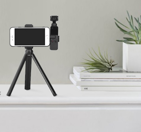 Компанія Sunnylife підготувала штатив Mini зі спеціальним адаптером, який дозволяє прикріпити та розмістити камеру DJI OSMO POCKET і телефон.