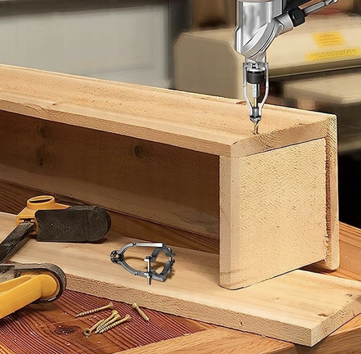 - ТОЧНІСТЬ КОНСТРУКЦІЯ: Завдяки своїй чіткій конструкції адаптер забезпечує плавний перехід між різними рядами свердління, забезпечуючи точне та контрольоване свердління як прямих, так і діагональних отворів у різних типах деревини.