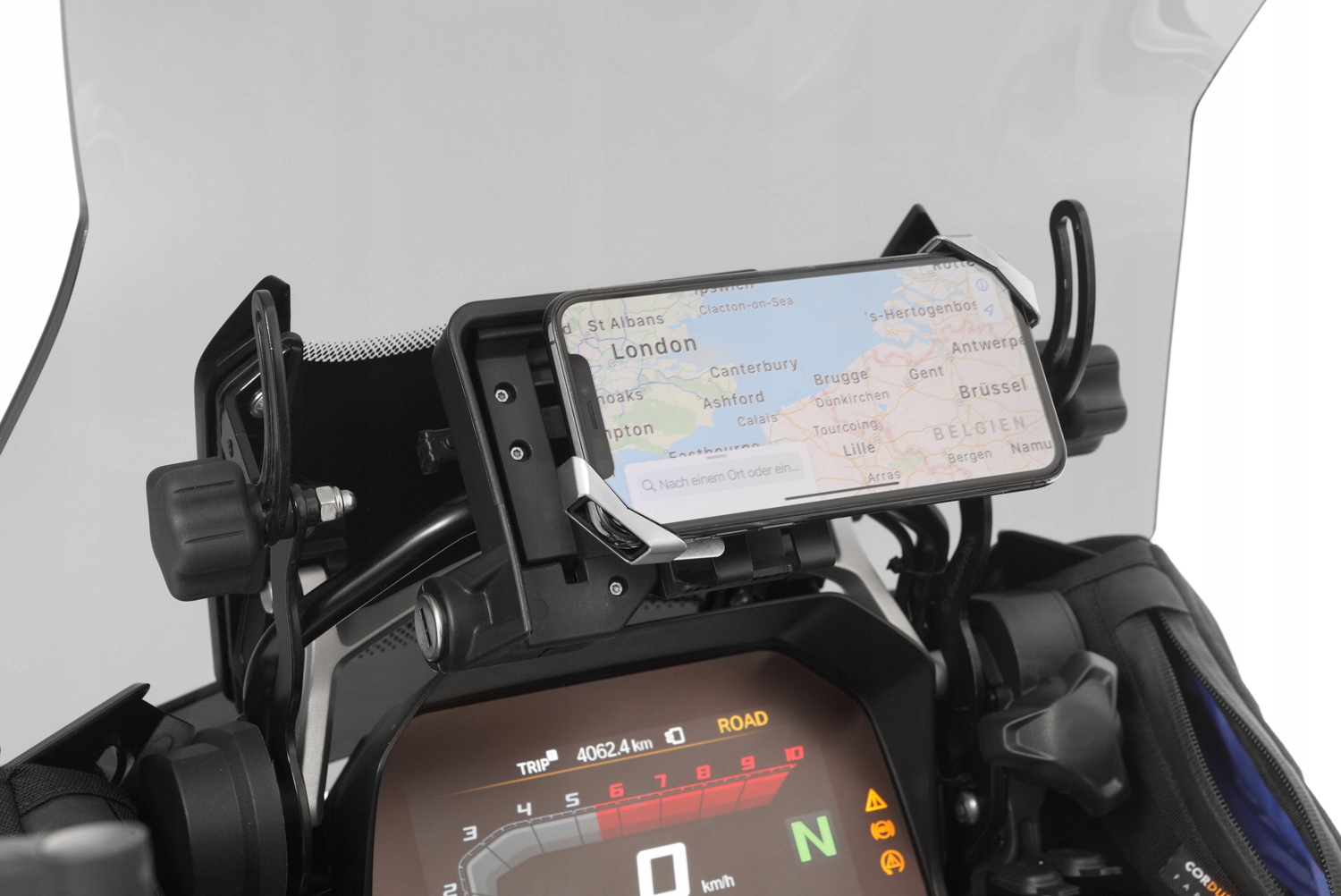 Обробляйте телефонний адаптер для вкладення на оригінальну навігацію в мотоциклах BMW в комплекті з власником смартфона. Весь ідеальний бренд Wunderlich.