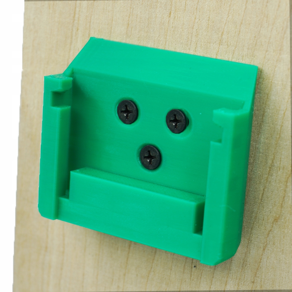 - Тримач сконструйований таким чином, що коли акумулятор вставляється в адаптер, він замикається, запобігаючи його випаданню.