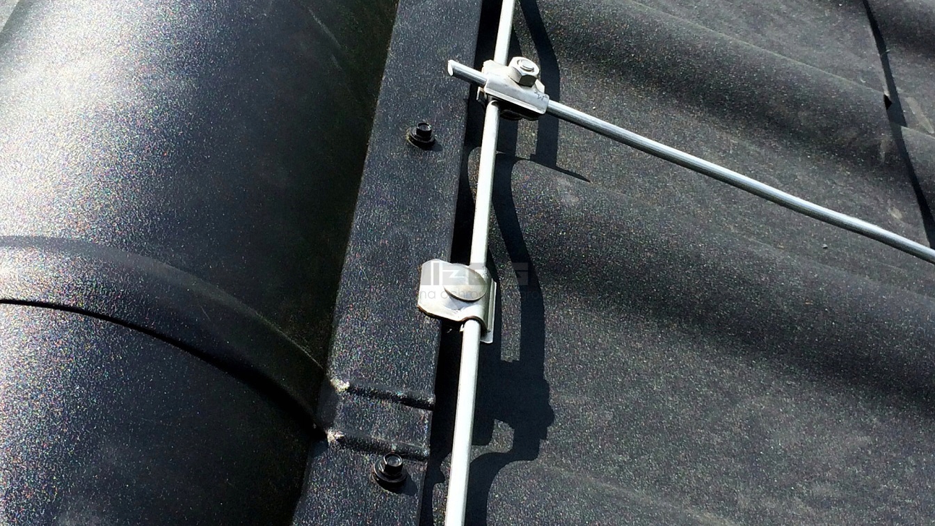 Дуже міцна ручка з нержавіючої сталі з порошковим чорним покриттям. Дозволяє встановити громовідводи на даху, покритому листом метал або листовий метал