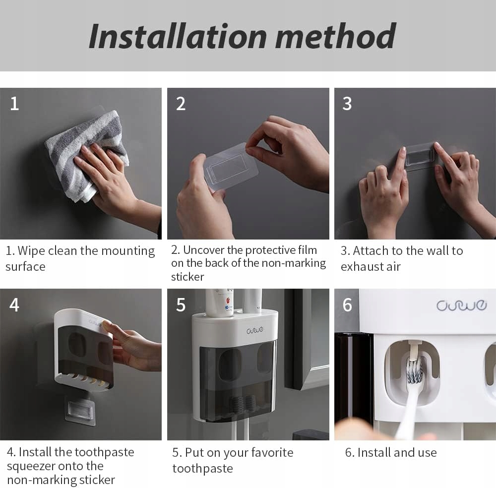 - Подвійний дозатор для зубної пасти та тримач для 4 зубних щіток, які відповідають побутовим потребам.