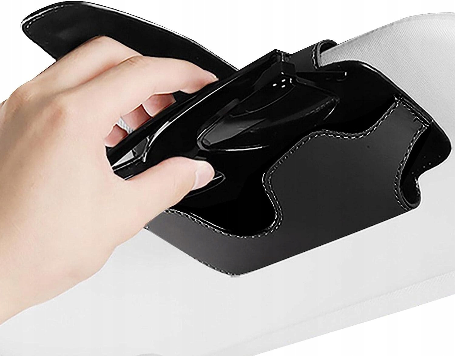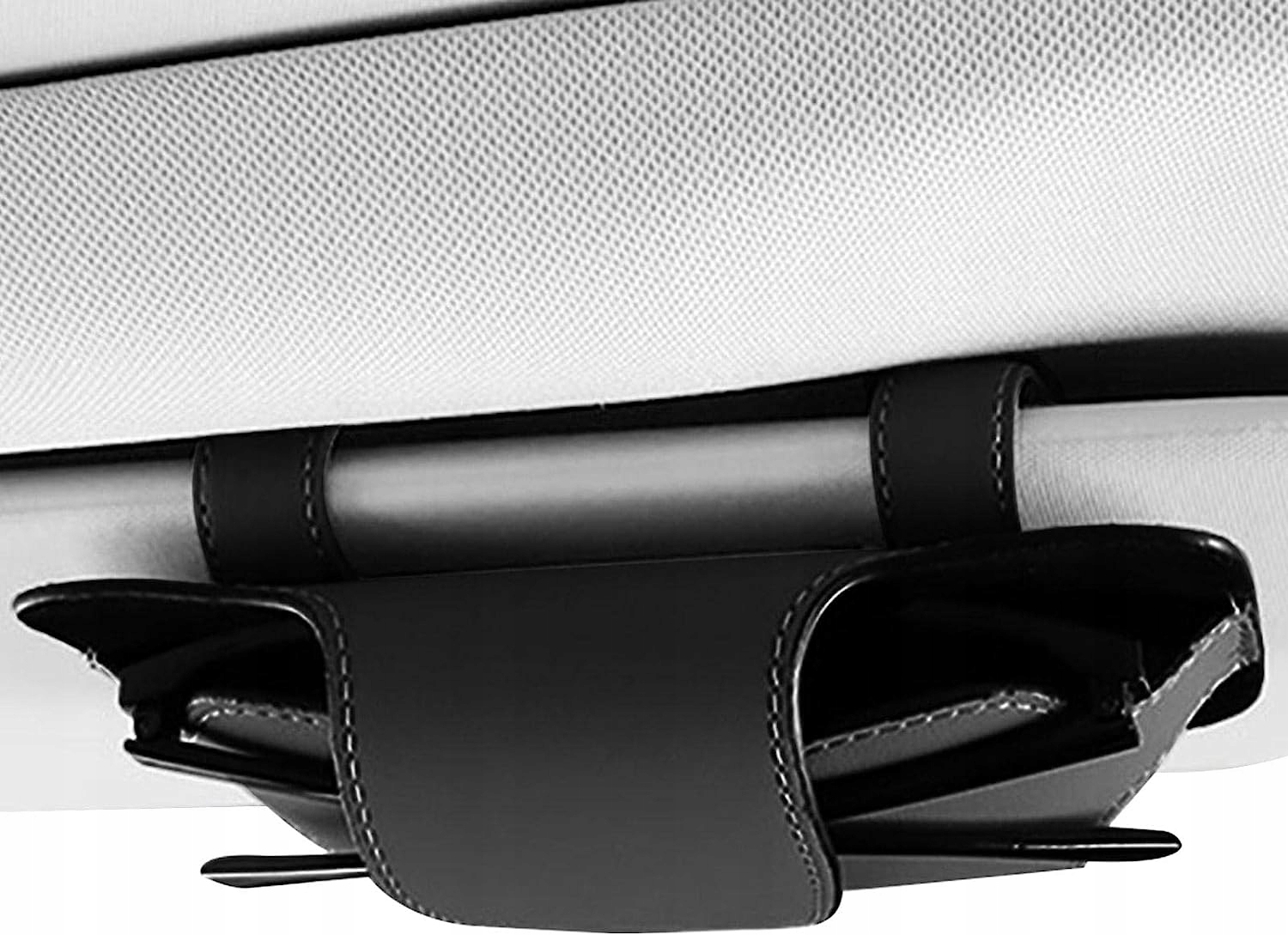 Безпечне водіння. Тримач для сонцезахисних окулярів із сонцезахисним козирком дозволяє водіям безпечно керувати автомобілем, оскільки його можна надійно прикріпити до сонцезахисного козирка, не закриваючи водієві огляд. Міцні матеріали Автомобільний тримач для сонцезахисних окулярів виготовлений із високоякісної шкіряної шкіри, забезпечує міцне відчуття в руці та може зручно повіситися на сонцезахисний козирок автомобіля. Корисна магнітна застібка Завдяки магнітній пряжці тримач для окулярів дозволяє легко дістати окуляри однією рукою, коли вони вам знадобляться. Тримач сонцезахисних окулярів для швидкого встановлення для автомобільного козирка має гнучкий затиск, який легко кріпиться до козирка та забезпечує надійну роботу, не просто вислизаючи. Велика сфера застосування Чохол для сонцезахисних окулярів сумісний із більшістю автомобілів, позашляховиків і вантажівок, має розмір приблизно 175 10 3 см 688 393 118 дюймів і широко використовується в більшості сонцезахисних окулярів і мобільних телефонів розміром менше 61 дюйма.