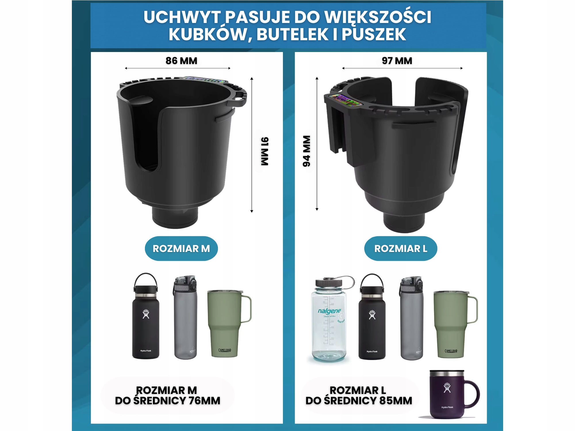розмір M - для напоїв, чашок та термозів діаметром до 76 мм.