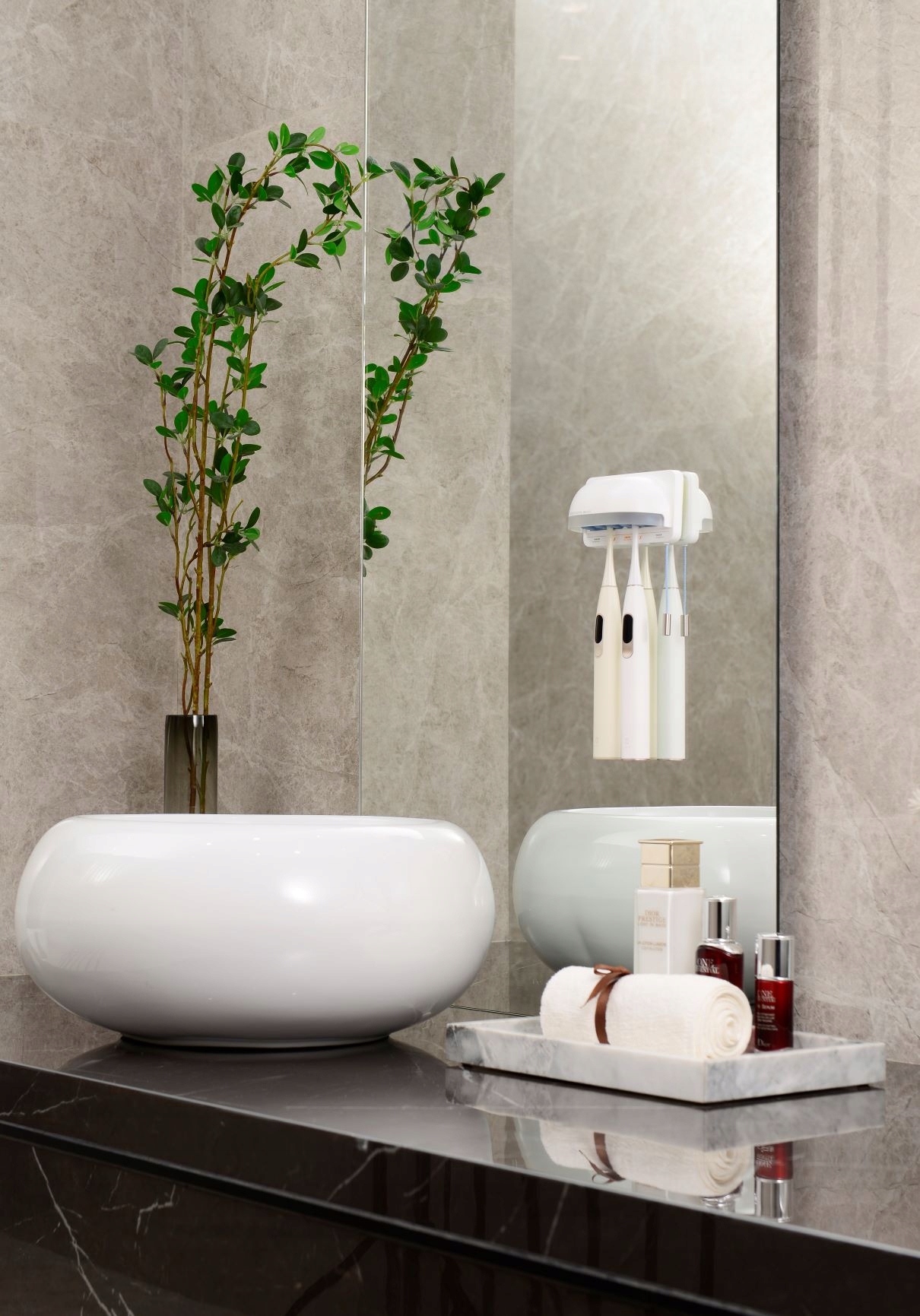 Oclean S1 - це не тільки незамінний пристрій для дезінфекції вашої зубної щітки, а й виконує функцію тримача. Ваша зубна щітка більше не лежить на раковині чи шафі, а займає своє місце в дезінфекторі. Ви можете розмістити в ньому до 5 зубних щіток!
