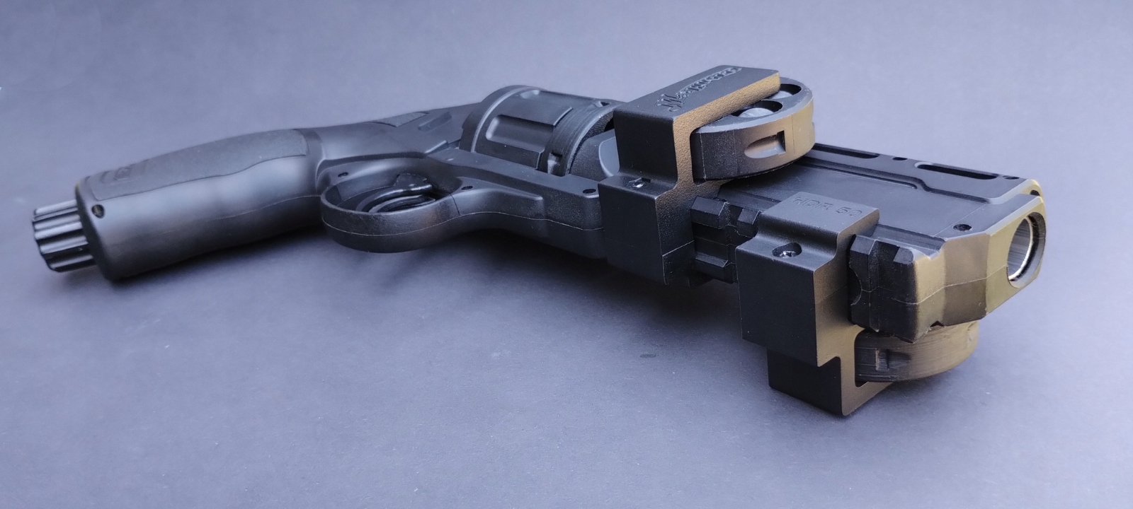 - Подвійна місткість: наш тримач дозволяє приєднати додатковий магазин до револьвера HDR 50 а використовуючи дві з них, ви матимете подвійну кількість додаткових пострілів.
