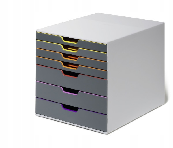 - Стильний та інноваційний контейнер із 7 різнокольоровими шухлядами, включаючи 3 високі та 4 низькі ящики.