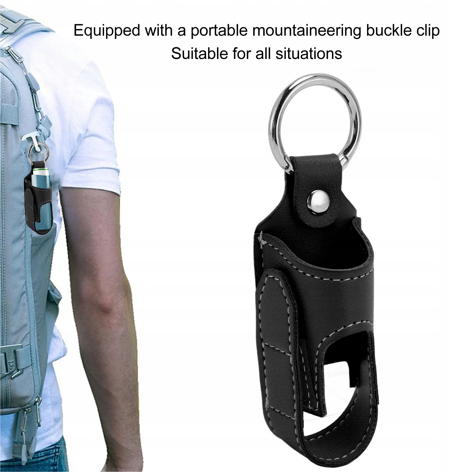 3. Легке кріплення: карабін, що входить у комплект, дозволяє легко прикріпити тримач до сумки, рюкзака або петлі для пояса, щоб ваш інгалятор завжди був під рукою.