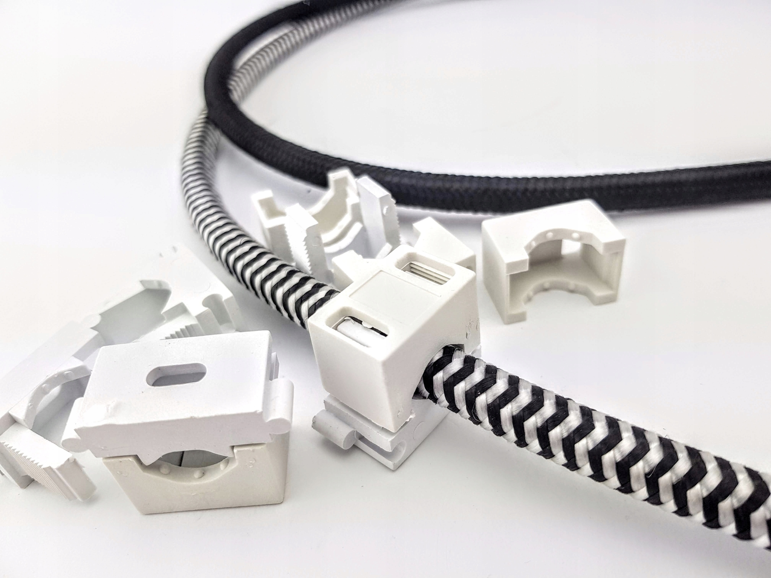 Тримачі дуже прості для збірки та складаються з двох елементів: корпусу, який прикручується до стіни, стелі чи будь-де, і натискний ковпак. Прикрутіть корпус за допомогою шпильки, що входить до комплекту, розмістіть кабель і натисніть на кришку.