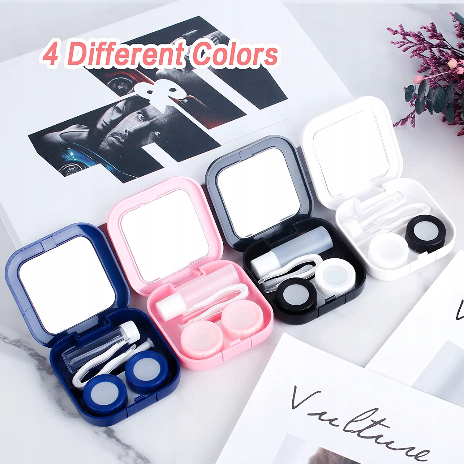 Тримайте свої контактні лінзи в чистоті Дорожній футляр для контактних лінз розроблено спеціально для контактних лінз і використовується для зберігання контактних лінз. Дорожній футляр для контактних лінз може підтримувати ваші лінзи чистими та вологими. Простий у використанні продукт поставляється з присоскою і маленьким дзеркалом на коробці для комфортного носіння контактних лінз. Ми також надамо пінцет, щоб було легше тримати контактні лінзи. Зручний для транспортування футляр для контактних лінз поставляється з квадратною зовнішньою коробкою розміром 68 x 63 x 21 см, у яку можна вмістити всі ваші дрібні аксесуари. Невеликий розмір, зручний для перенесення, підходить для використання під час виходу. Міні-футляр для контактних лінз з безпечного матеріалу виготовлений з нетоксичного та несмачного пластику, який не пошкодить ваші контактні лінзи. Виготовлення якісне, поверхня гладка, її можна використовувати багато разів. У багатій упаковці ви отримаєте 4 чарівні тримачі для контактних лінз, включаючи синій, рожевий, білий і чорний. Кожен милий тримач для контактних лінз містить 1 пінцет, 1 присоску, 1 пляшечку та 2 маленькі коробочки.