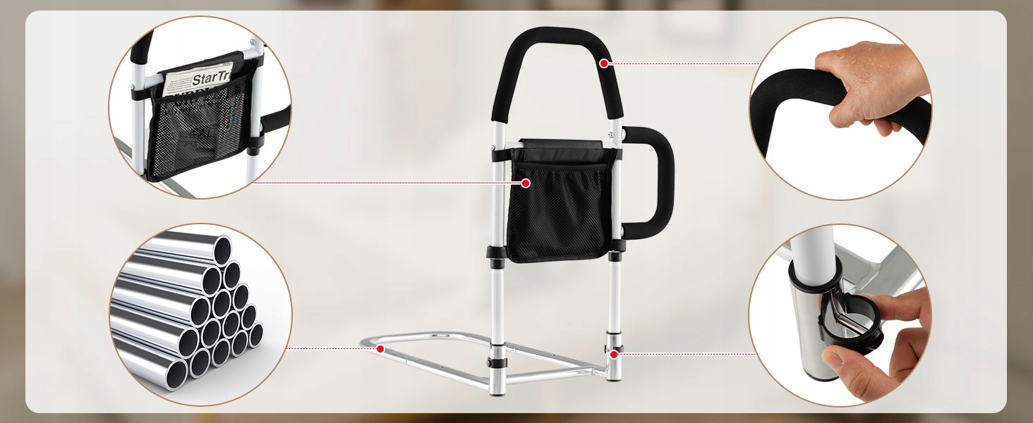 🛡【Дизайн із двома ручками】 Ця поруччя безпеки має два продуманих пінопластових поручня різної висоти, що надає різним користувачам більше можливостей захоплення під час підйому та підйому з ліжка, підвищуючи безпеку та зменшуючи зусилля. Обидві ручки покриті зручною нековзкою піною.
