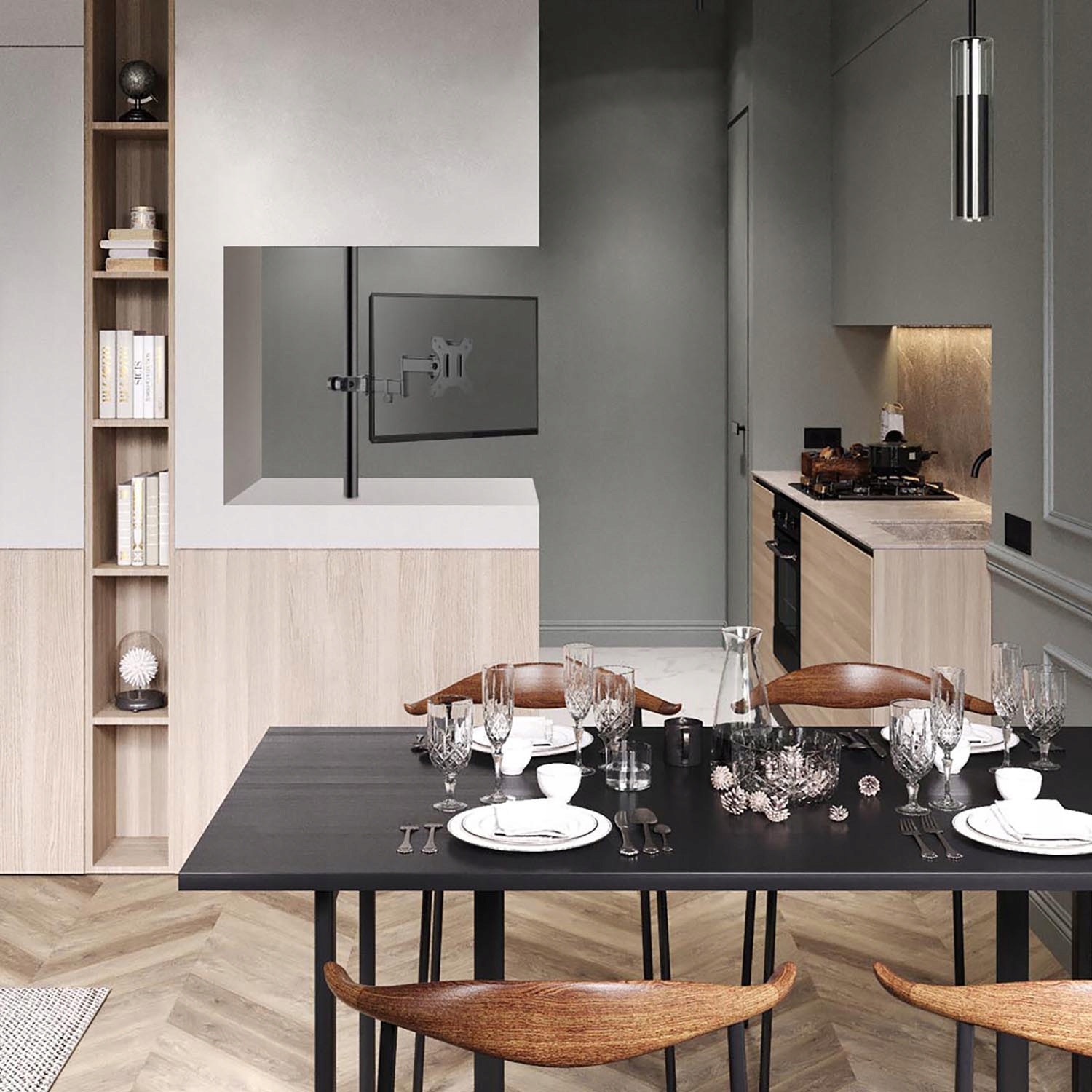 - Призначено для моніторів від 17" до 32" (або більше, якщо їх вага не перевищує 8 кг і стандарт VESA сумісний з тримач)