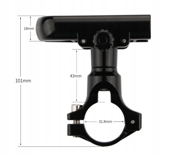 Суцільна ручка, повністю виготовлена з алюмінію, прикріплена до керма або виносу за допомогою затискача. Все з'єднане гвинтами, що гарантує стабільність навіть у складних умовах руху. Можливість установки як вертикально, так і горизонтально. Підходить для телефонів шириною від 60 до 100 мм.