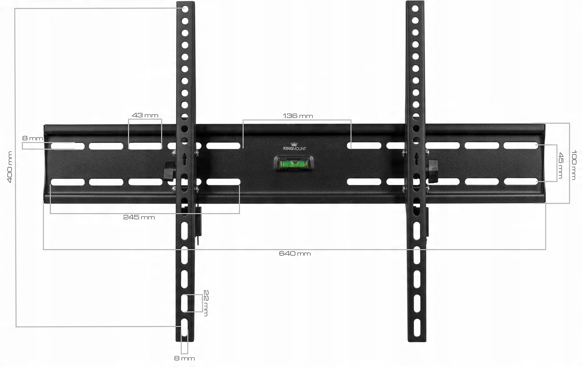 - Тримач виступає зі стіни на 42 мм, що значно впливає на естетику та універсальність