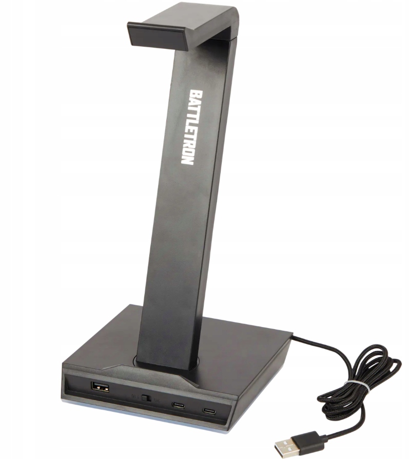 Ця підставка дозволить естетично зберігати навушники, а додатковою перевагою є функція зарядки. Виріб має 2 порти USB і 1 роз'єм USB-C, тому ви можете заряджати не тільки навушники, але й інші пристрої. Підключіть його, і він матиме різнокольорове підсвічування.