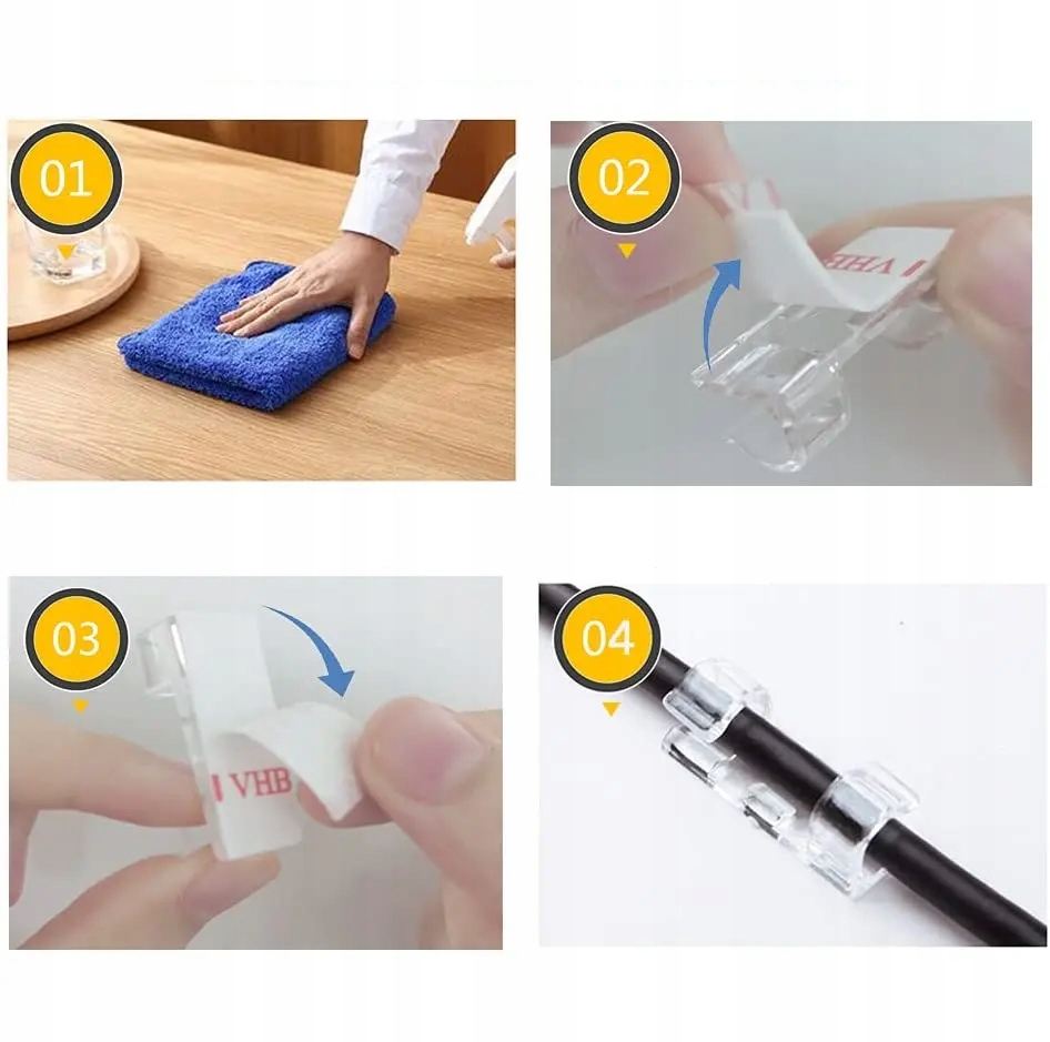 Органайзери добре працюватимуть і вдома, і в офісі, і в майстерні. Вони підходять для організації кабелів комп’ютера, телебачення або майстерні. Використовуючи міцну стрічку у вигляді наклейок, ви можете прикріпити їх до більшості поверхонь, напр. на столі, на шафі, біля телевізора чи в машині.