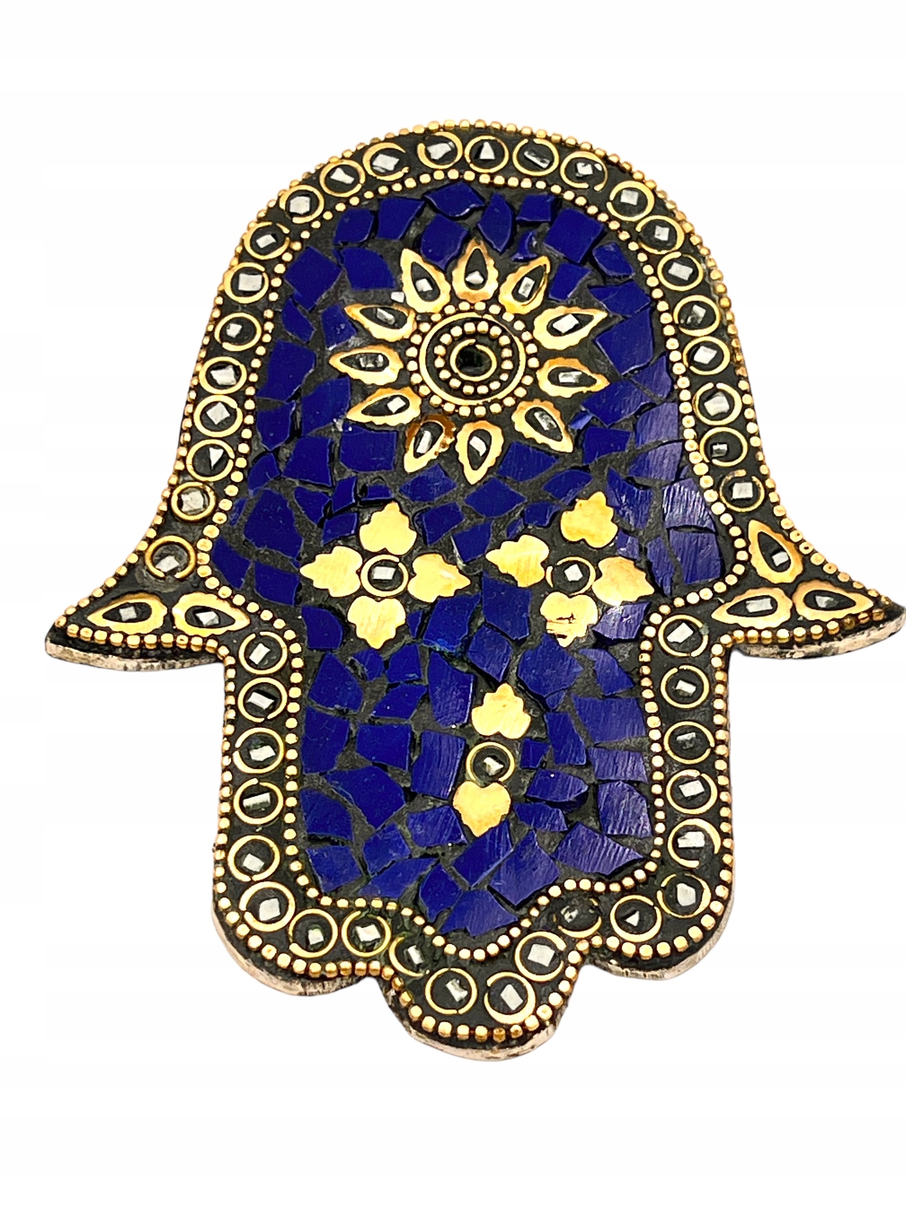 Кадильниця у формі руки Фатіми, виготовлена з металу, прикрашена натуральним камінням і золотою фурнітурою, є практичним і чарівним доповненням будь-якого інтер'єру.