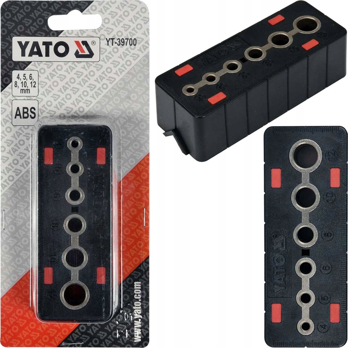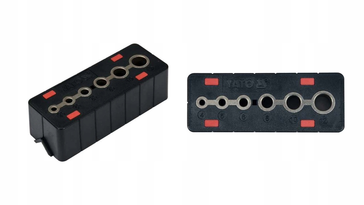 • 5 отворів, оснащених напрямними з вуглецевої сталі для свердел діаметром 4, 5, 6, 8, 10 і 12 мм