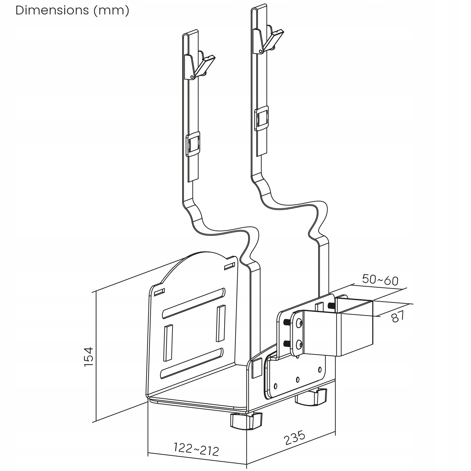 Комп'ютерний тримач Maclean CPU, діапазон 122-212 мм, макс. навантаження 10кг, чорний, MC-116 B