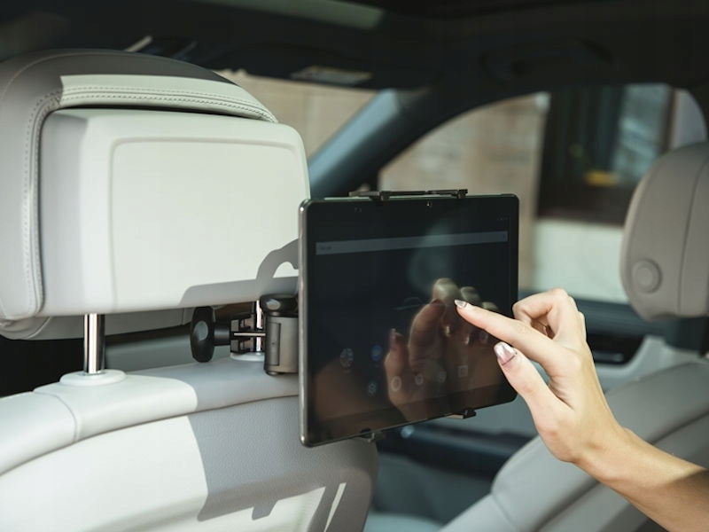 Зручний тримач для планшета, встановлений на підголівнику. Має рухливий кронштейн для регулювання кута нахилу і відстані від підголівника, а також головку, яка дозволяє повертати планшет на 360 градусів. Він сумісний з моделями планшетів з діагоналлю 7" - 11".