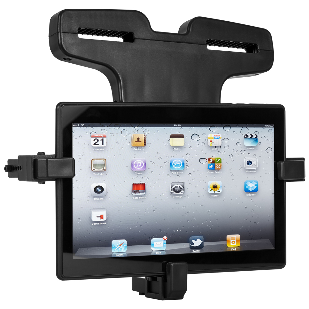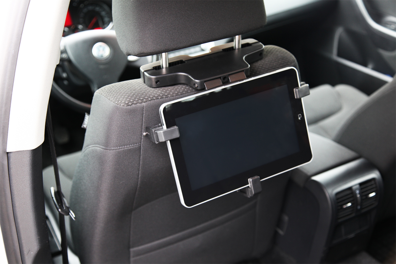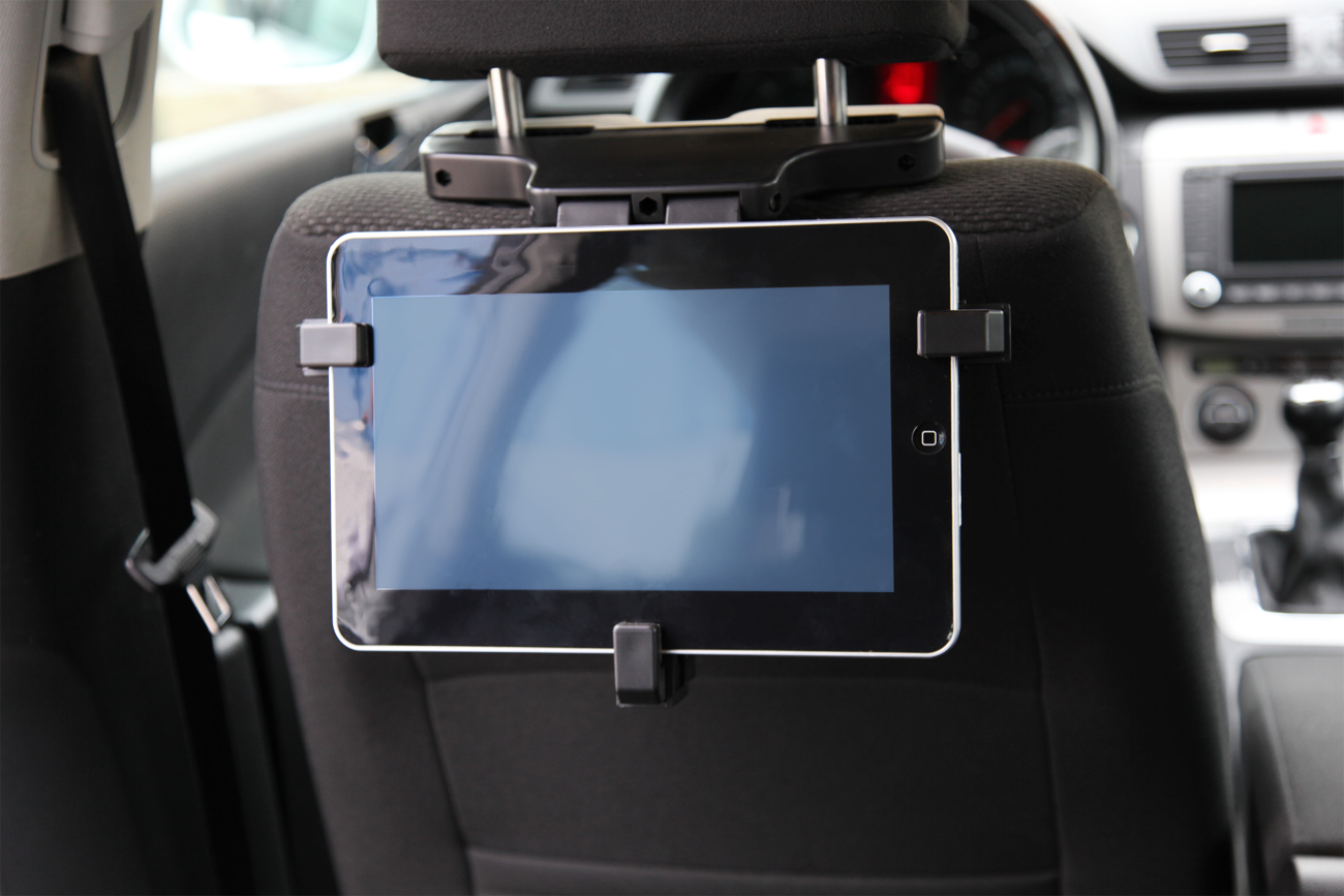 Автомобільний тримач із функцією нахилу, призначений для кріплення DVD/iPad/ігрової консолі на підголівнику автомобільного крісла. Затискачі з поролоновою прокладкою для захисту обладнання від подряпин. Індивідуальне регулювання ширини, висоти та глибини тримача для DVD плеєра/iPad/ігрової приставки.
