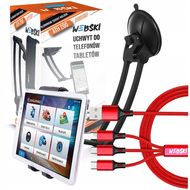 ТРИМАЧ ДЛЯ ПЛАНШЕТА З ПРИСОСКОЮ ДЛЯ ВІКНА КАБІНИ + КАБЕЛЬ WEBSKI 3IN1
