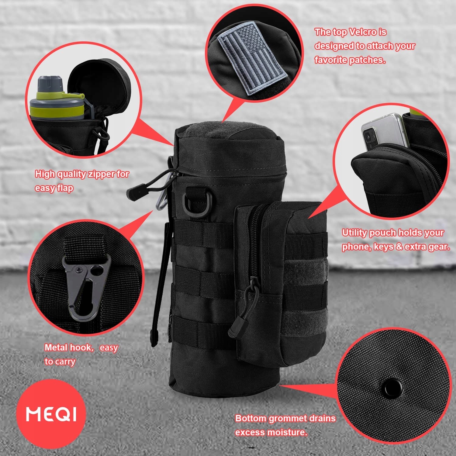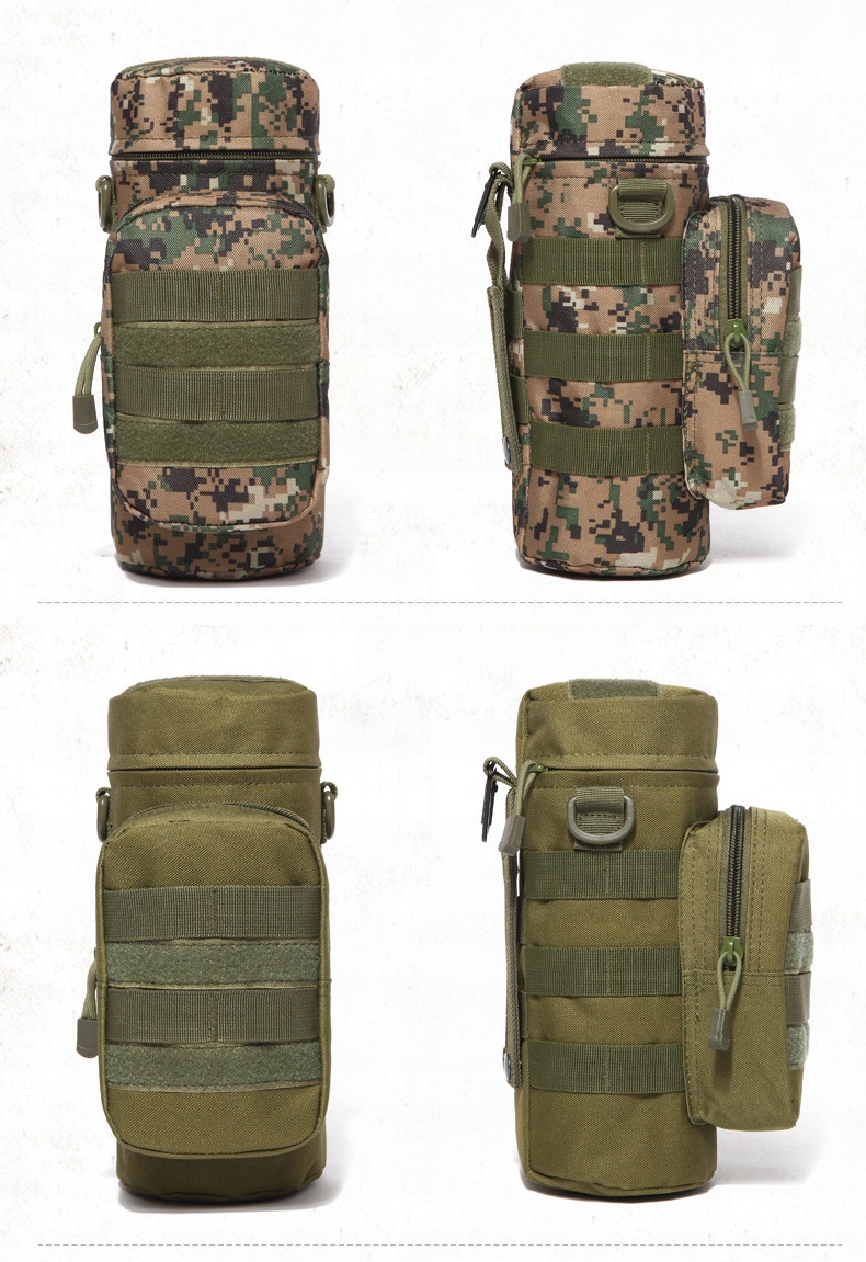 【Розмір】великий тримач для пляшки з водою: 11 x 4,3 дюйма; Маленька передня кишеня: 6,3 x 4,3 x 1,6 дюймів, смужка MOLLE по всьому футляру дозволяє користувачам надійно прикріпити до сумки додаткові аксесуари та спорядження MOLLE. Ідеально підходить для війни на відкритому повітрі.