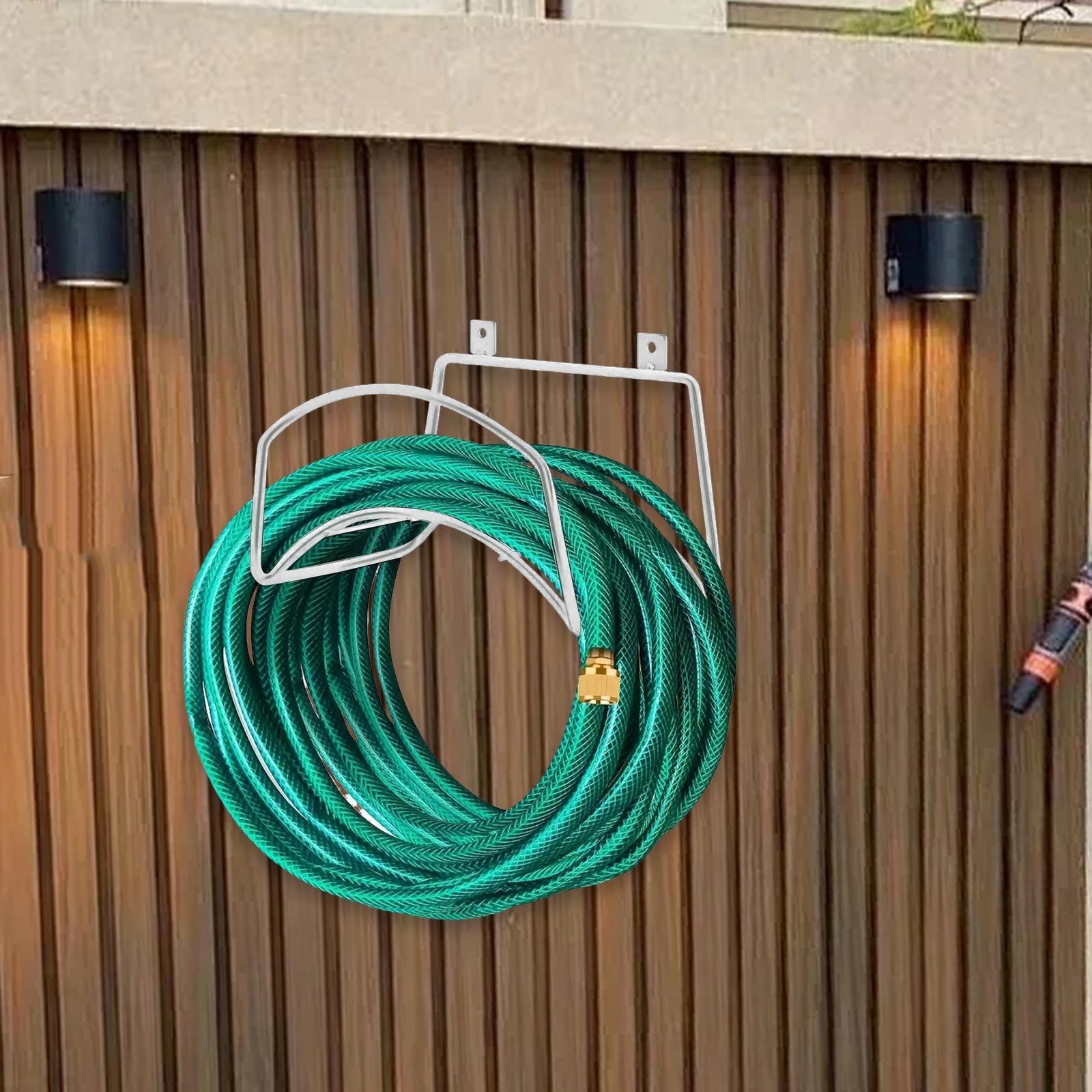 [Стійкий матеріал]: виготовлений із якісного заліза, цей тримач для садового шланга розроблений як зносостійкий, міцний і водонепроникний. Він стійкий до деформації та створений для багаторазового тривалого використання.