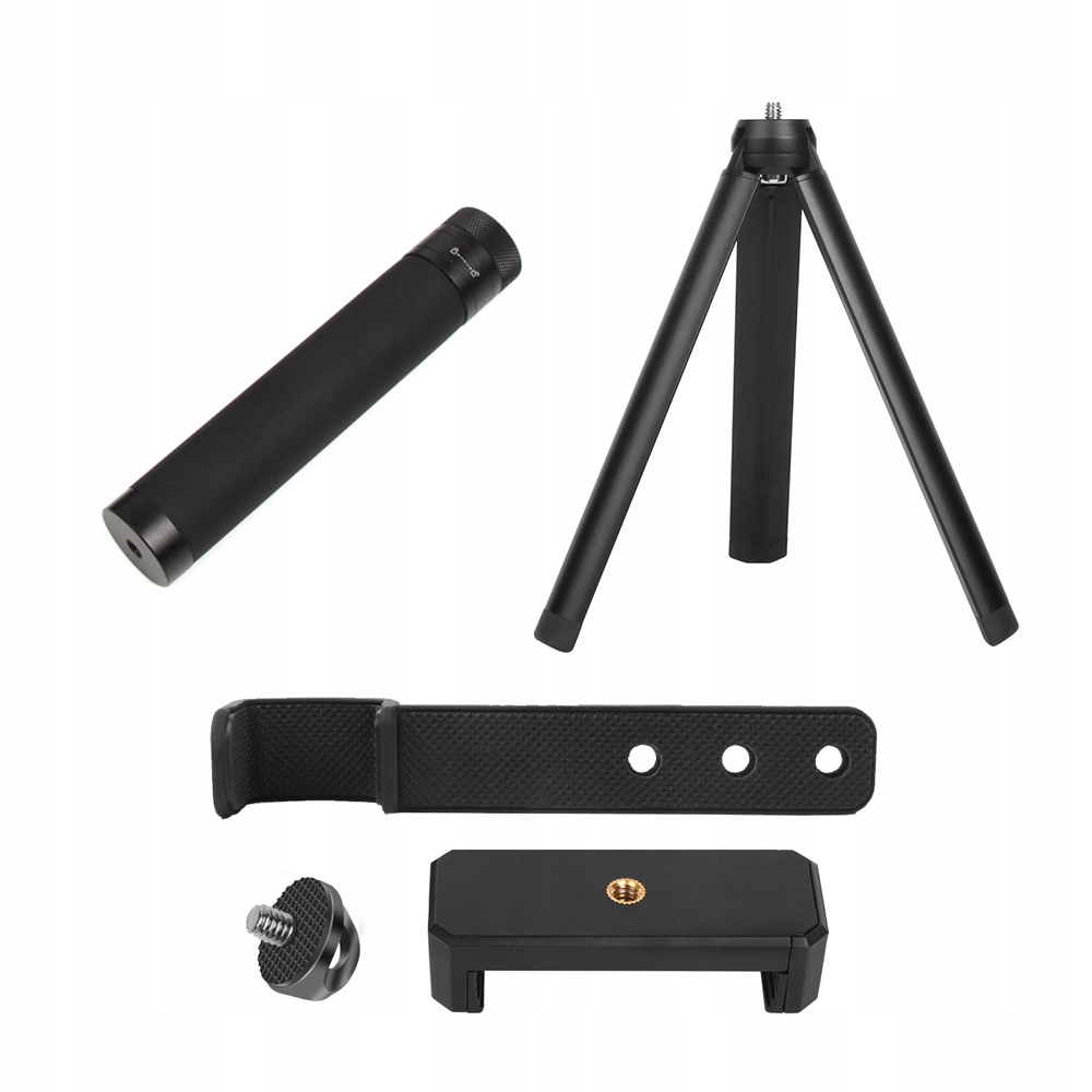 Штатив має стандартне кріплення з різьбою 1/4", тому ми можемо встановити не тільки спеціальний тримач для камери DJI OSMO POCKET і телефону з комплекту, але й будь-який інший пристрій зі стандартною монтажною різьбою 1/4". '.