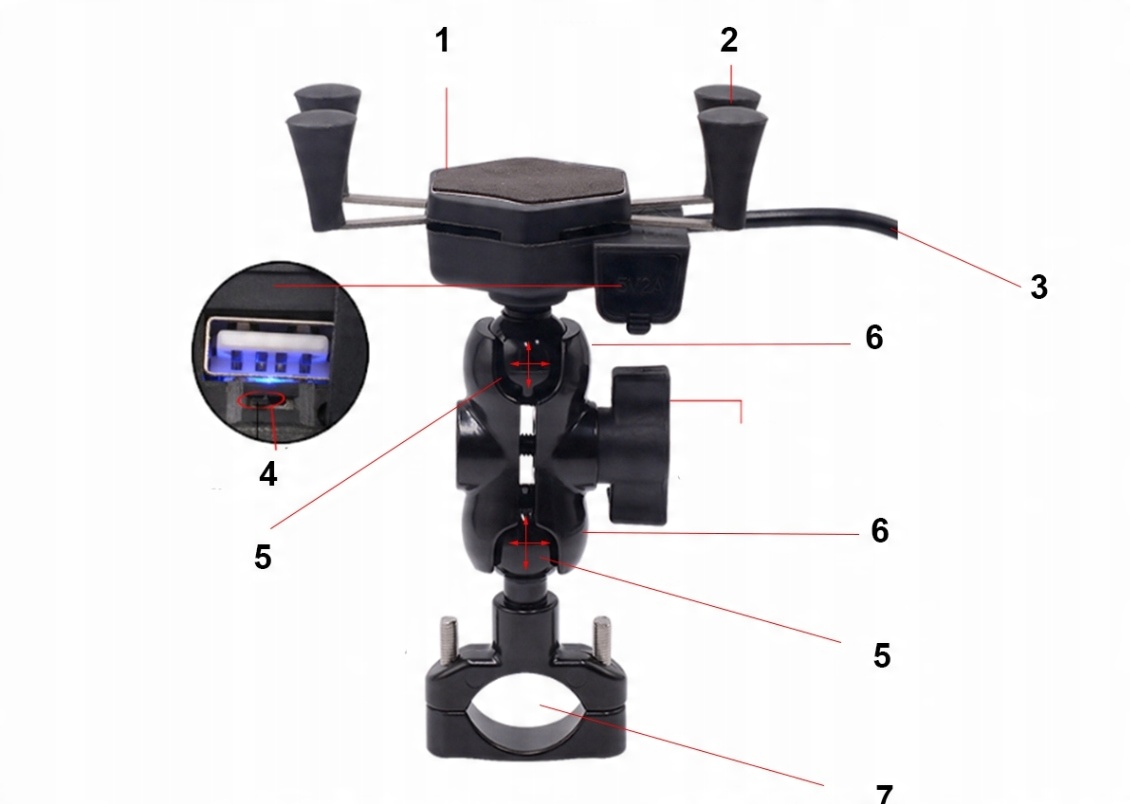 ТРИМАЧ ДЛЯ ТЕЛЕФОНУ З USB ЗАРЯДНИКОМ 2.1A МОТОЦИКЛ