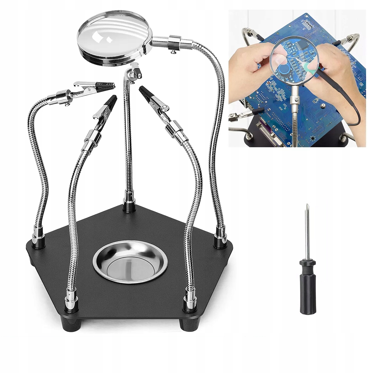 Тримач для третьої руки зі збільшувальним склом Допомога для ручного паяння 4 гнучких рук